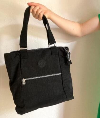 ポケットが内側に2箇所とタブレットが入る間仕切りとストラップのあるポケットかま1つ。前と後ろにファスナー付で2箇所としっかり収納できますよ^_^