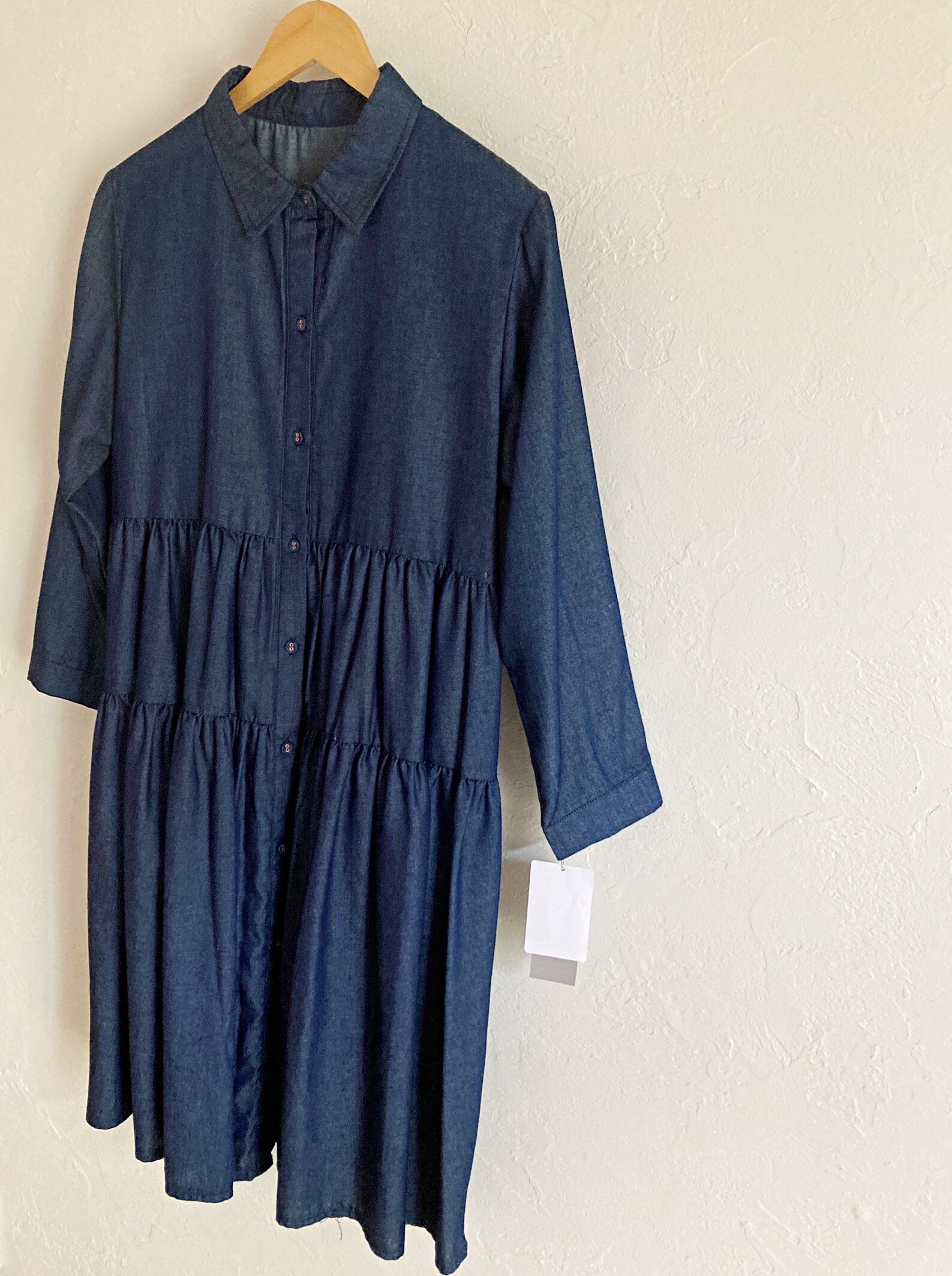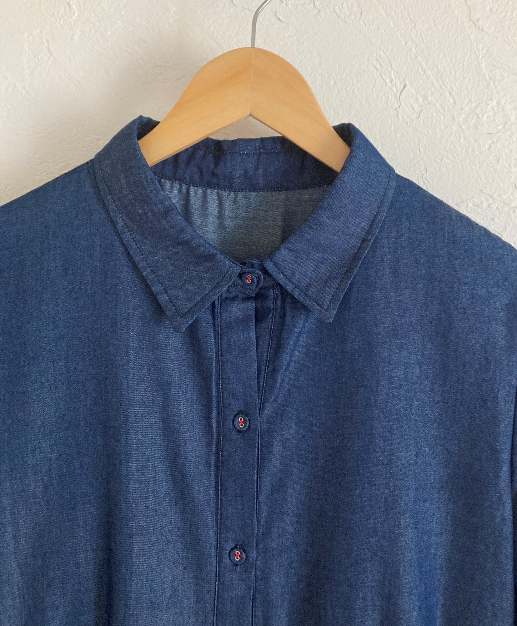 デニムティアードシャツワンピネイビー